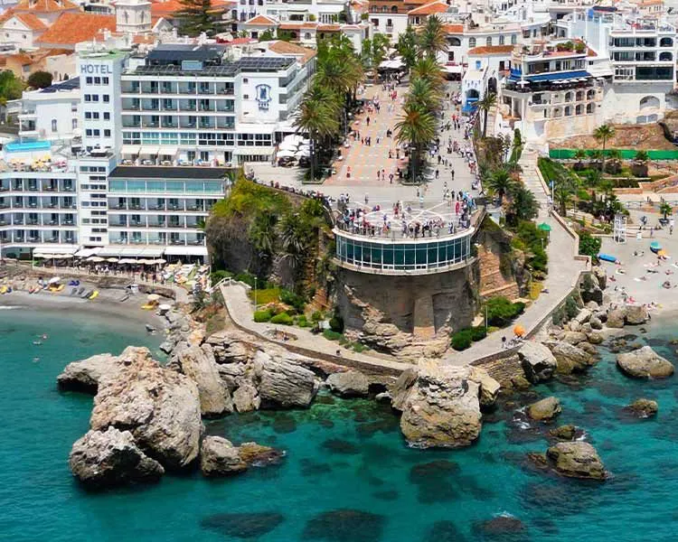 The Balcón de Europa is an iconic viewpoint located in the heart of Nerja, Málaga. It was originally a 9th-century fortress known as the Castillo Bajo de Nerja, which became a strategic defence point in the 16th century. During the War of Independence, the castle was destroyed by the English. In 1885, King Alfonso XII visited Nerja after an earthquake and, impressed by the views, named it the ‘Balcony of Europe’.