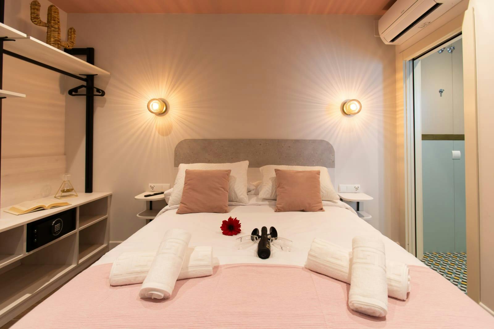 This elegant poolside room is a bright and tranquil retreat, bathed in natural light throughout the day. Large windows let in fresh air and offer a serene view, creating a warm and welcoming atmosphere. Decorated in soft pink tones, the room radiates relaxation and charm, with delicate details that enhance its cosy and sophisticated style. Luxurious bedding and elegant furnishings provide the perfect space to unwind. With its beautiful design and privileged poolside location, this room offers a tranquil and luxurious experience.